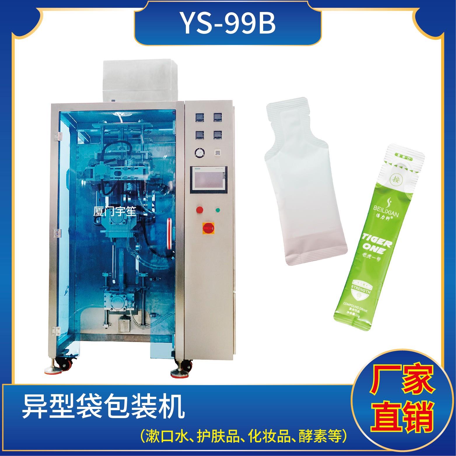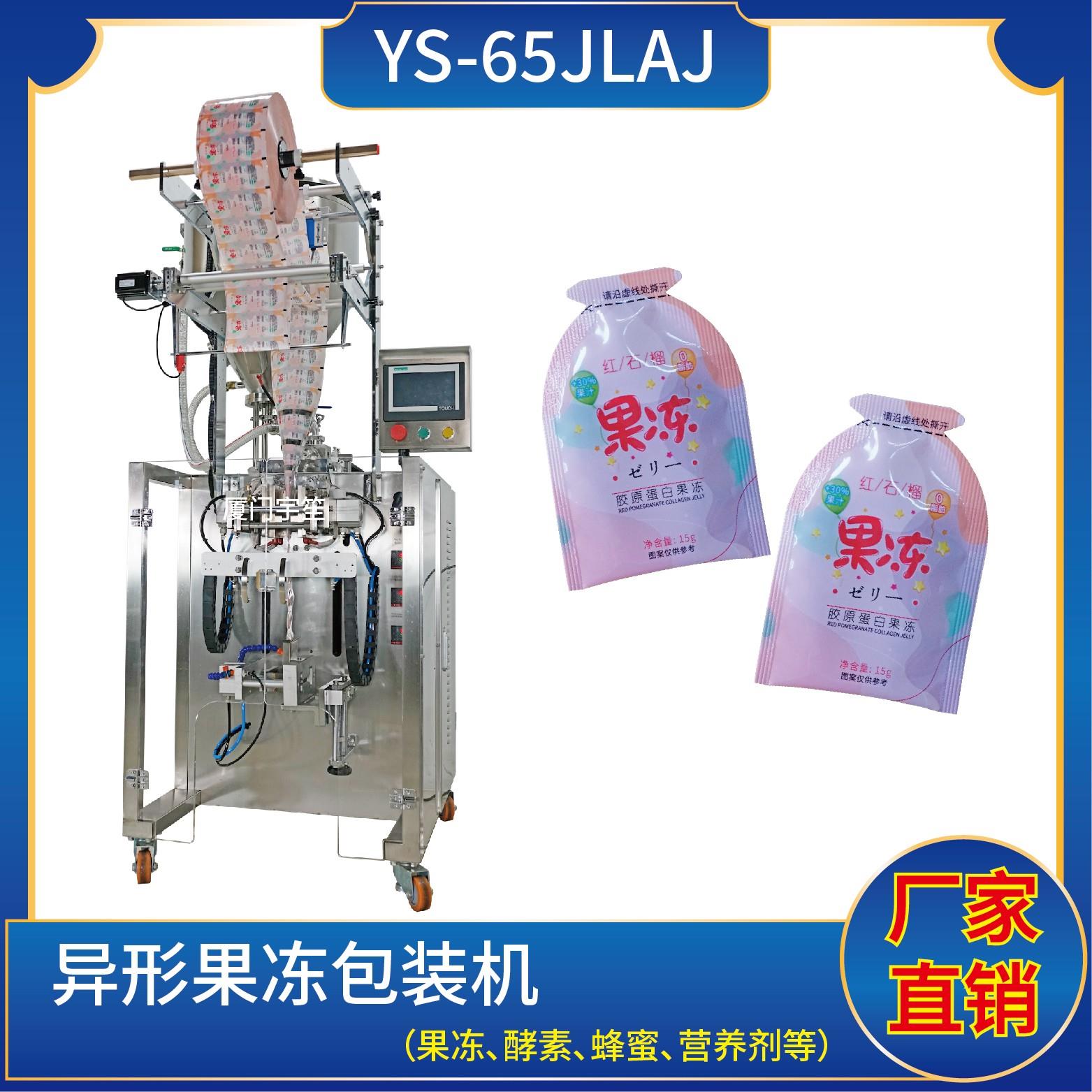YS-65JL 異型袋包裝機(jī)特 點(diǎn) 1、適用于食品、醫(yī)藥、化工、化妝品行業(yè)中液體、醬料等物品的計(jì)量包裝。2、可自動(dòng)完成制袋、計(jì)量、下料、封合、分切、計(jì)數(shù)、且可根據(jù)客戶要求配置打印批號等功能。3、觸摸屏操作,PLC 控制,驅(qū)動(dòng)步進(jìn)電機(jī)控制袋長,性能穩(wěn)定、調(diào)整方便、檢測準(zhǔn)確。智能式溫控儀,PID調(diào)節(jié),保證將溫度的誤差范圍…