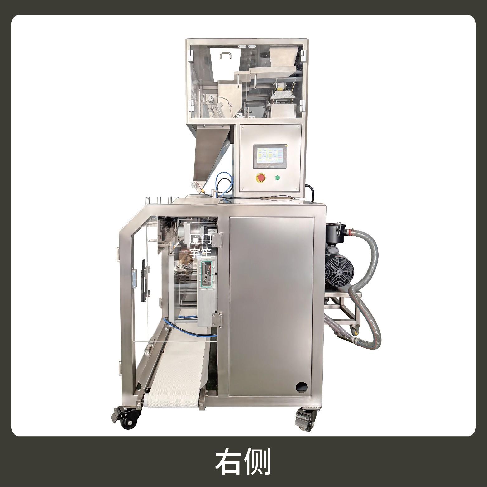 包裝流程全自動(dòng),可抽真空(真空度可達(dá)到-0.1Mpa)??筛鶕?jù)充填物料的性質(zhì)選配不同的下料結(jié)構(gòu)。